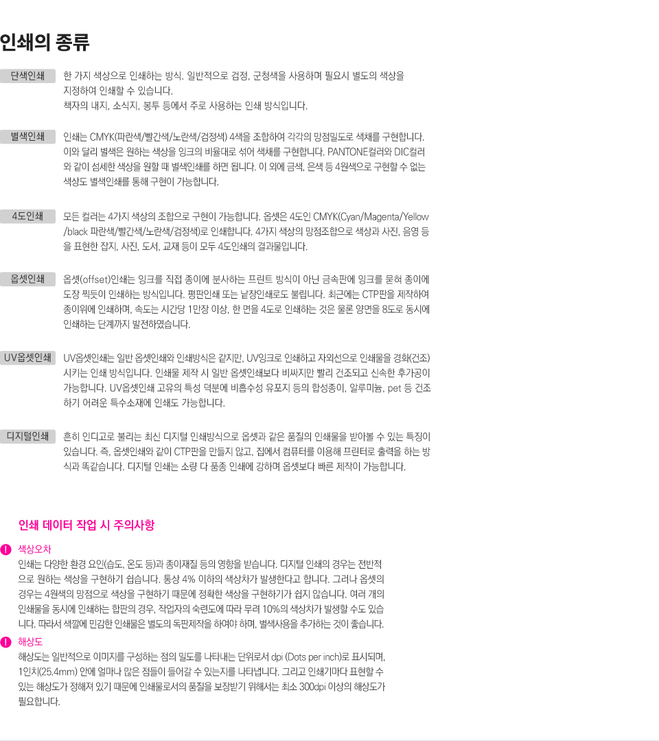 인쇄의 종류