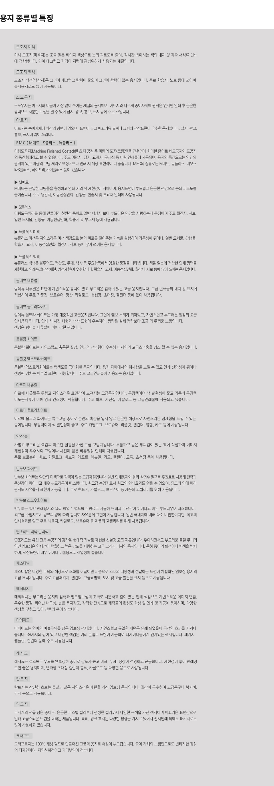 용지 종류별 특징