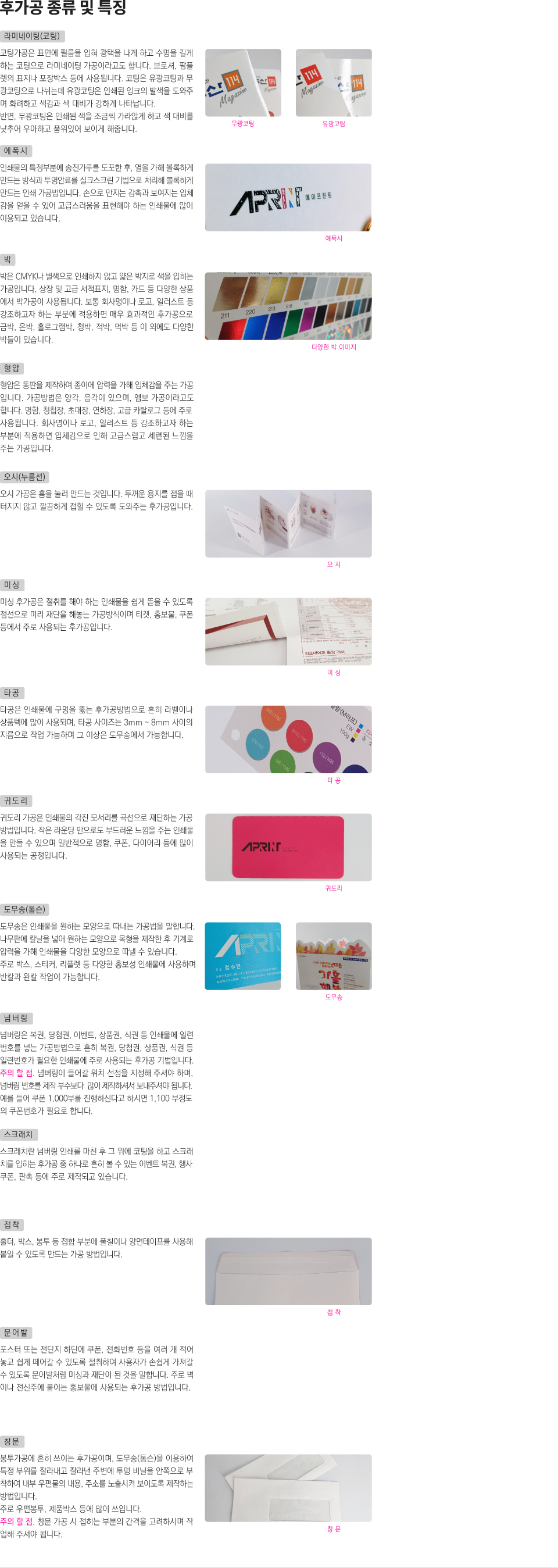 후가공 종류 및 특징