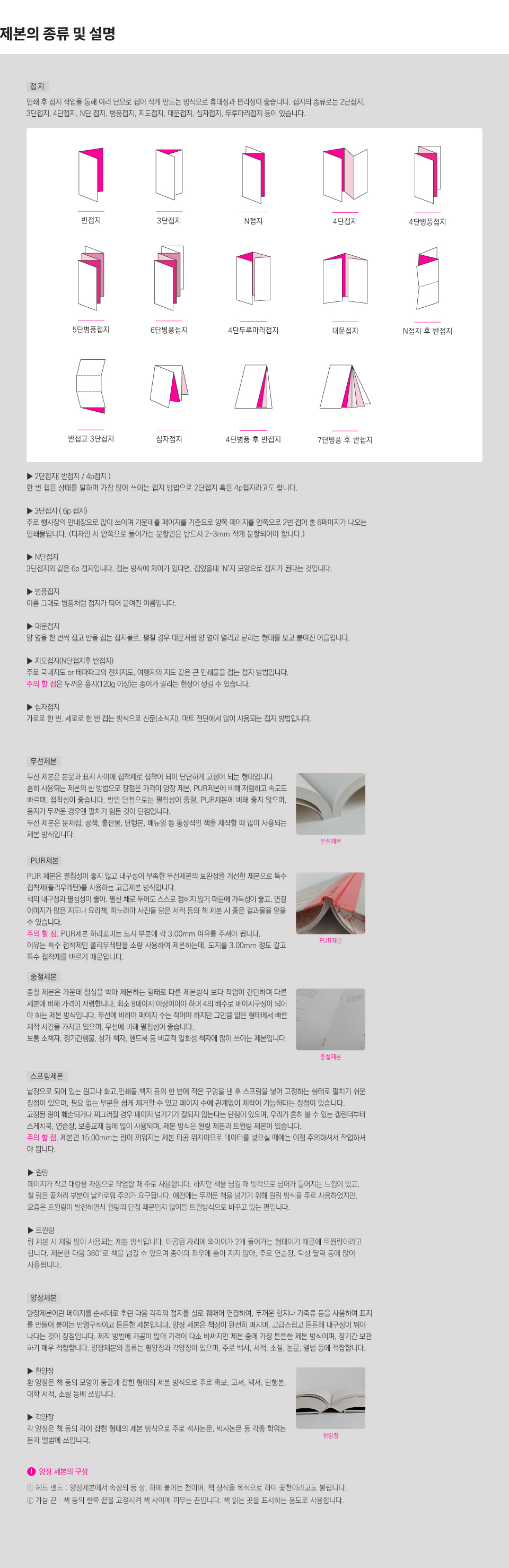 제본의 종류 및 설명